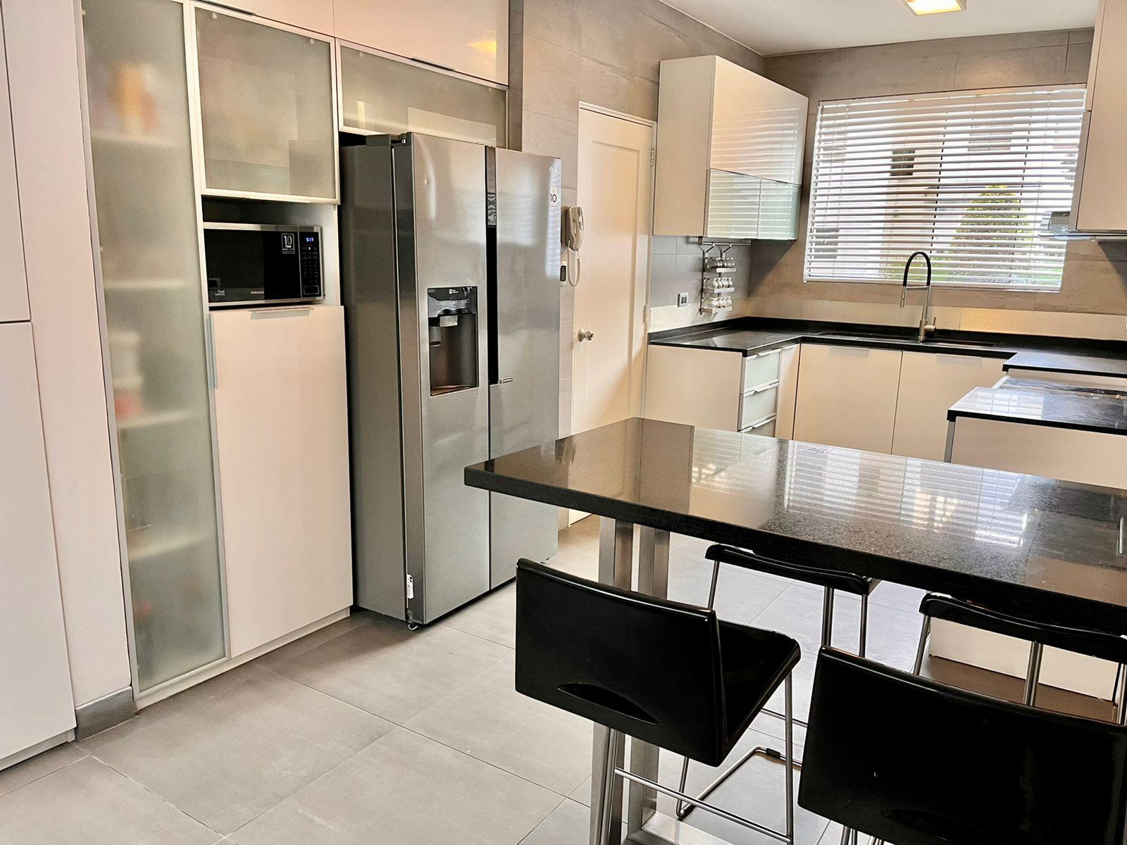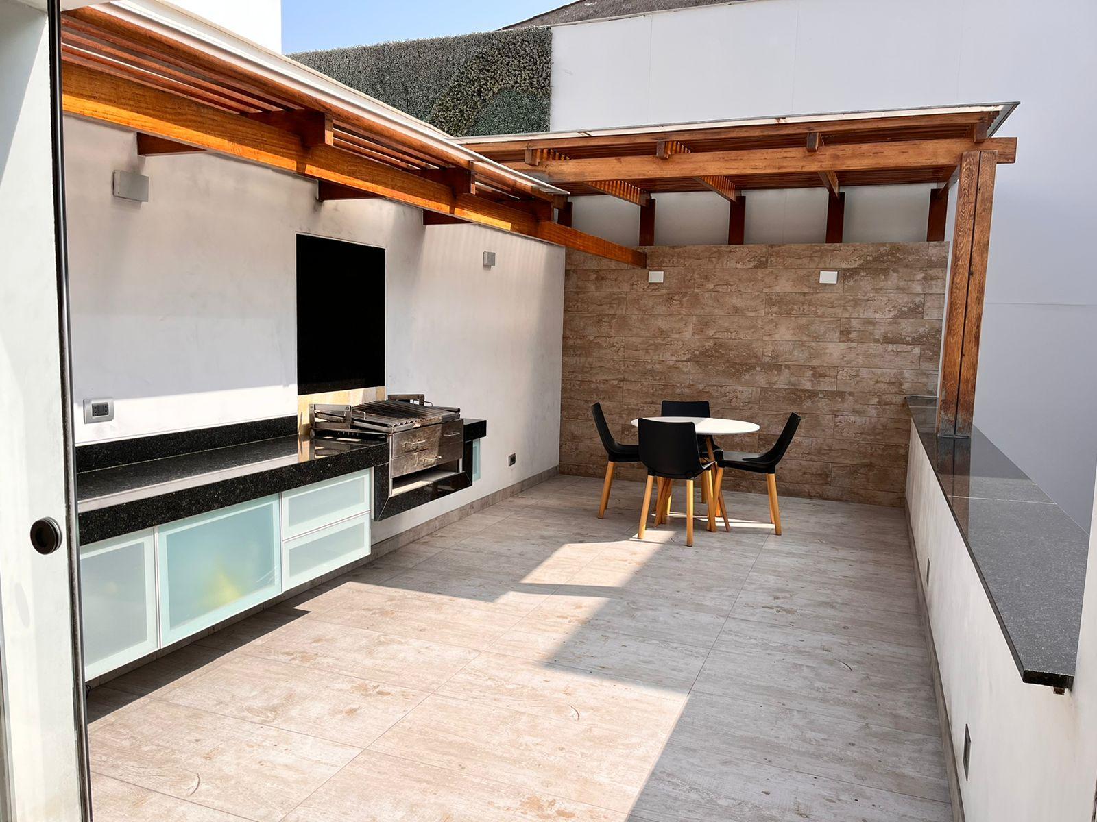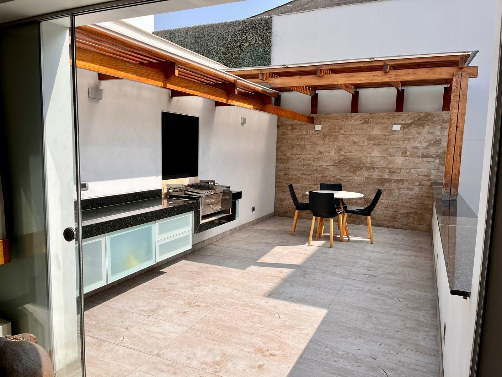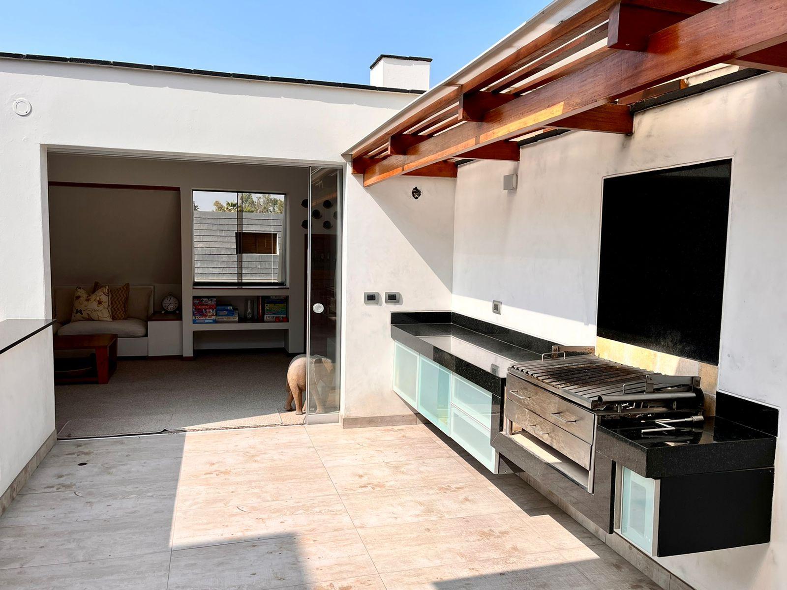Piso 3: Family room con chimenea de etanol, frigobar, terraza semi techada + BBQ. Lavandería super amplia, cuarto y baño de servicio. Calentador a gas GLP.