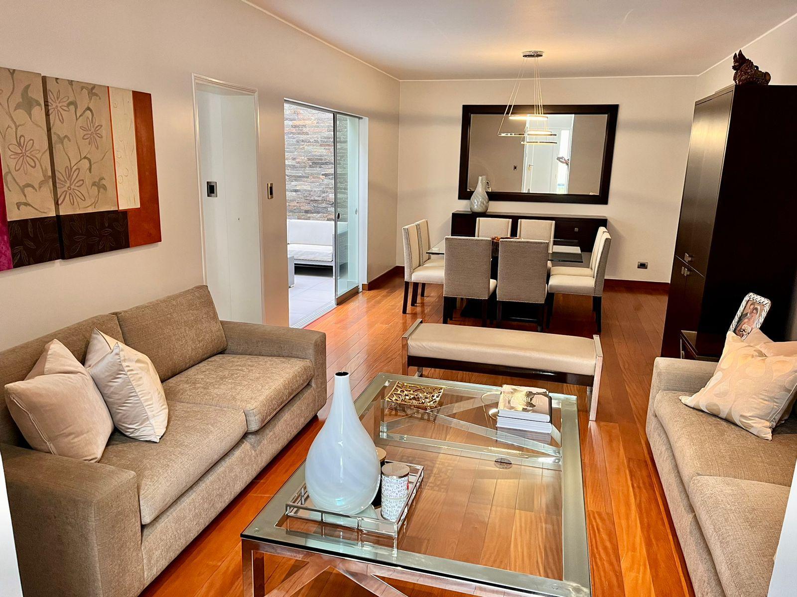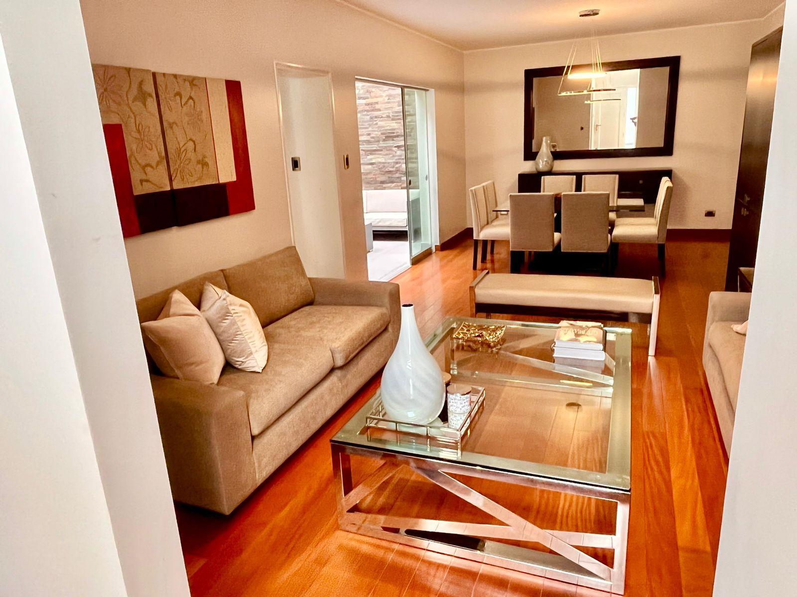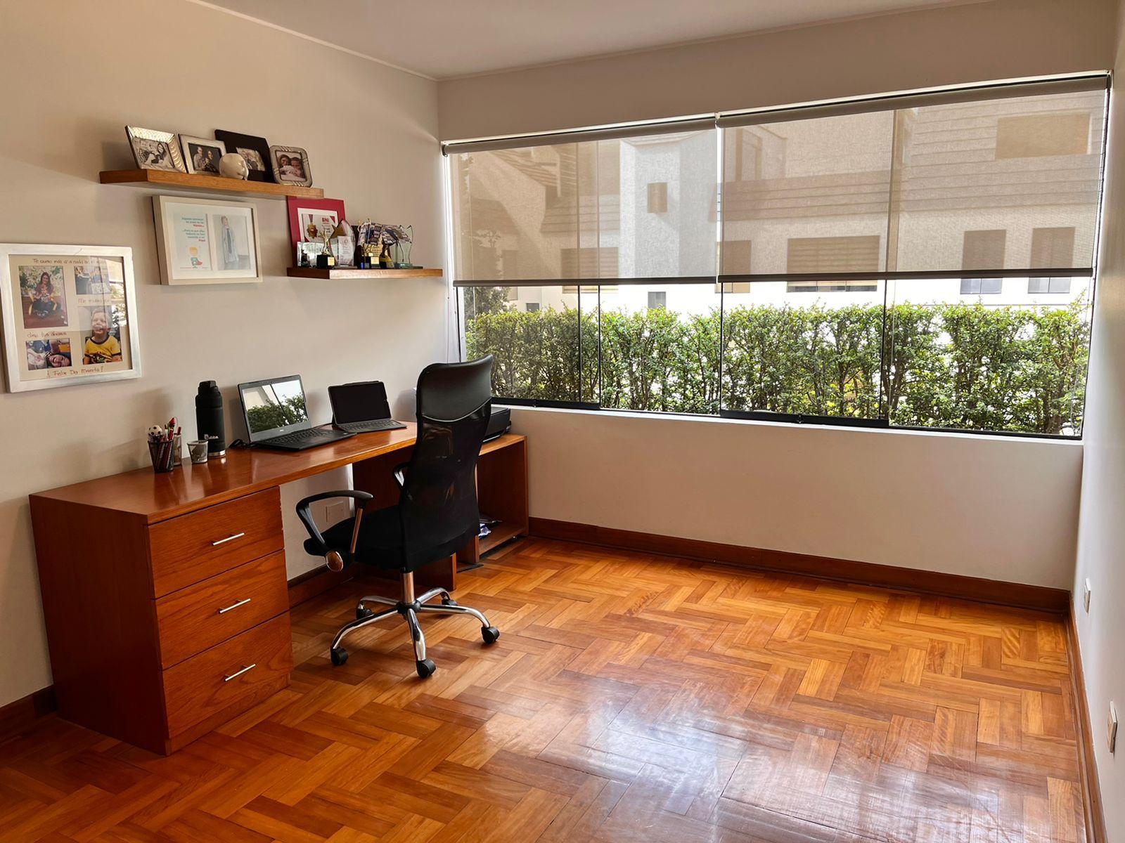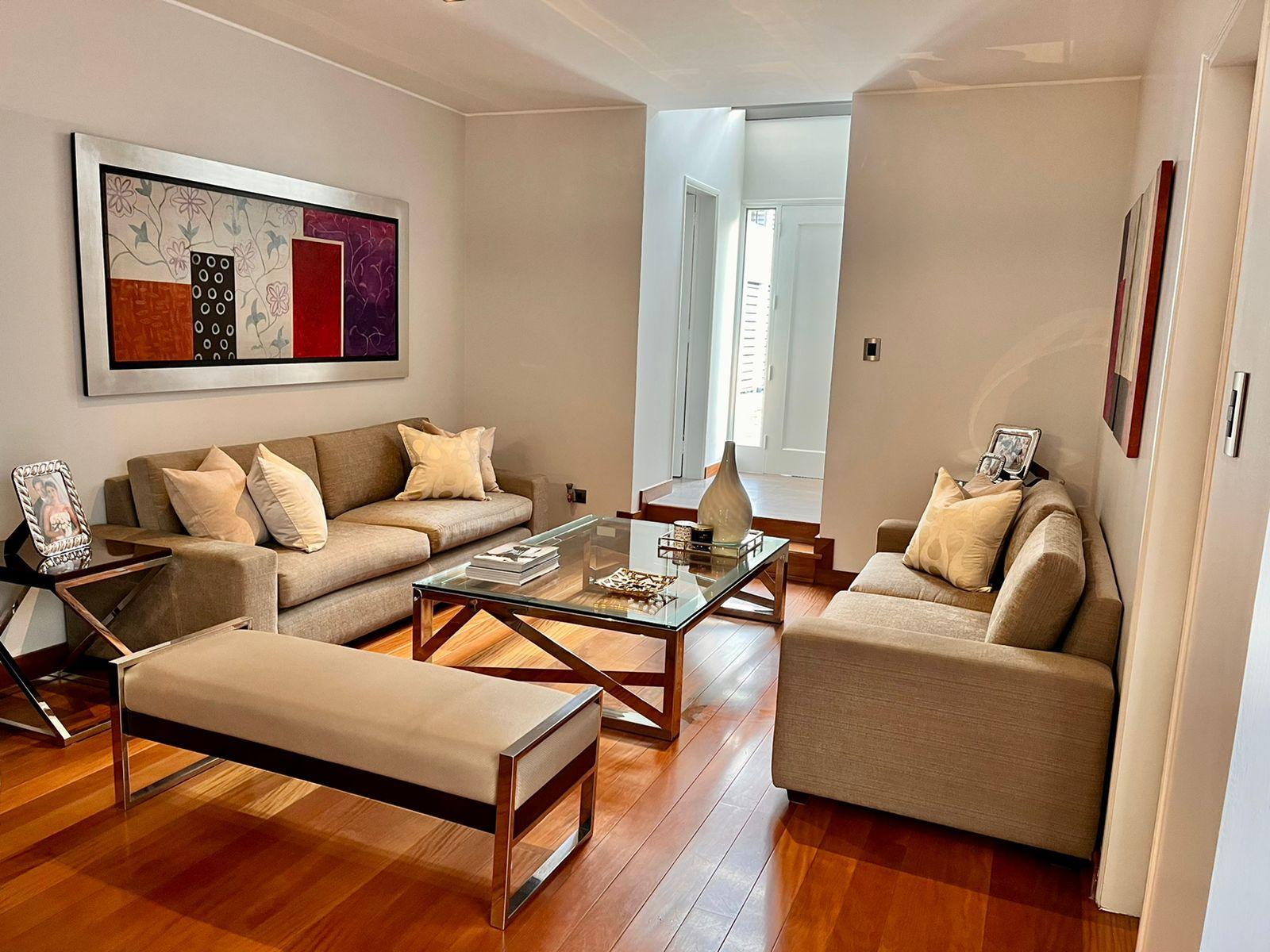 Piso 3: Family room con chimenea de etanol, frigobar, terraza semi techada + BBQ. Lavandería super amplia, cuarto y baño de servicio. Calentador a gas GLP.