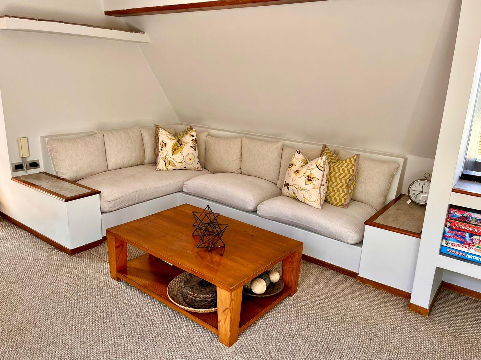 Pisos de madera en área social y privada. Cocina con porcelanato.
