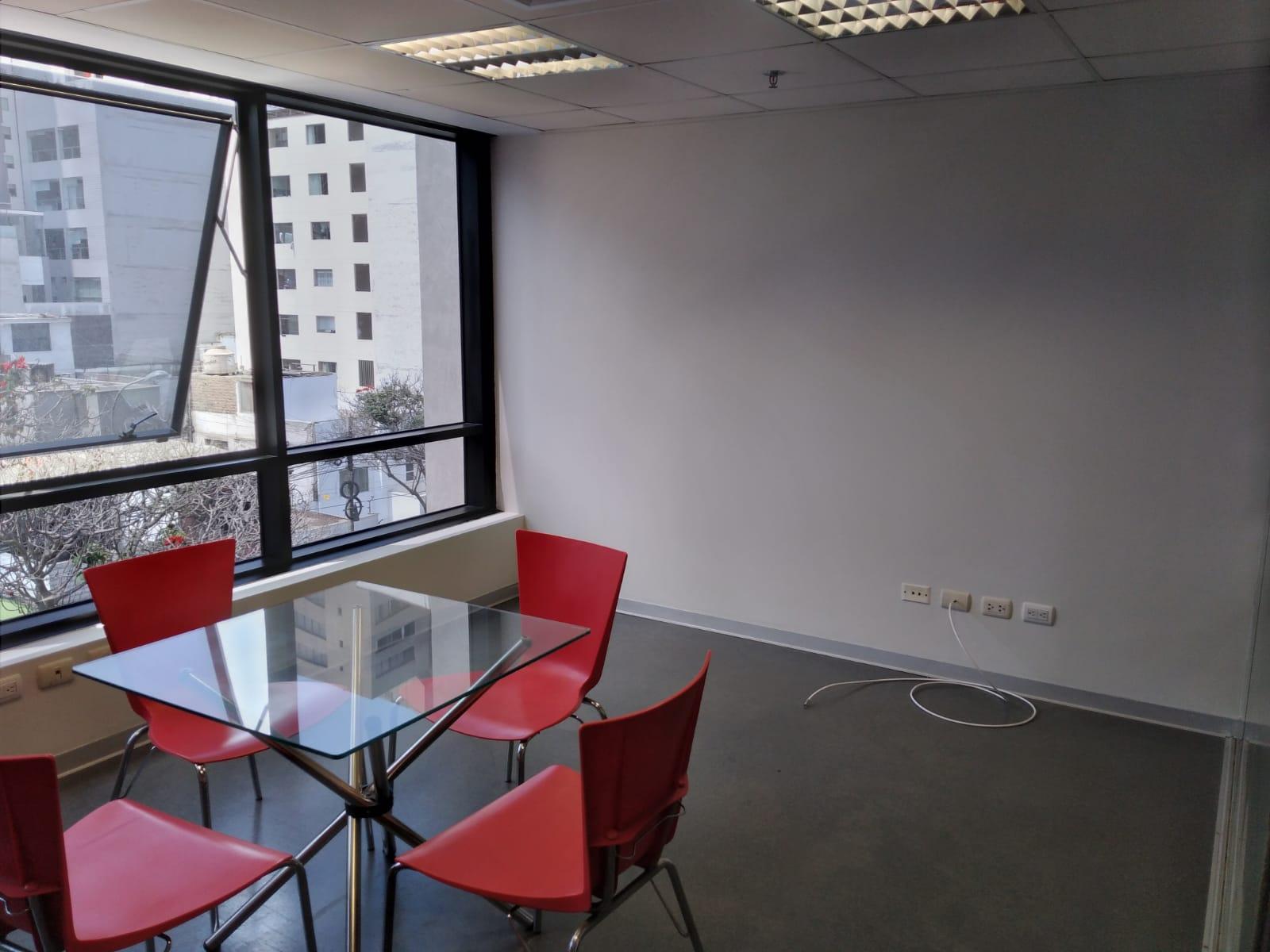 Moderna Oficina Amoblada de 85 m2, con vista a la calle, tiene 2 baños, cochera doble , y se encuentra lista para ocupar. Este moderno Centro Empresarial está compuesto de 4 Torres, 2 de Oficinas y 2 de Departamentos, tiene bastante seguridad, acceso 24/7 y además cuenta con Administración a tiempo completo. Sin embargo, el costo del mantenimiento es bastante bajo comparado con otros centros empresariales, ya que el gasto se divide entre las 4 Torres, las mismas que son independientes y solo se conectan entre sí por los sótanos. La rampa de ingreso vehicular es bastante amplia, hay 2 salas de usos múltiples con un Aforo de 63 Personas a un Costo de S/ 70 la hora de lunes a sábados y S/ 105 la Hora los días Domingos. Está muy bien ubicado, cerca de Bancos, Notarias, Restaurantes, Cafés y Transporte Público. mantenimiento soles 320, PRECIO TOTAL DE ALQUILER $ 1,000 incluyendo la cochera doble numero 212 ubicada en el sótano 3
