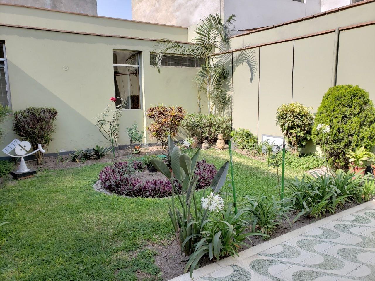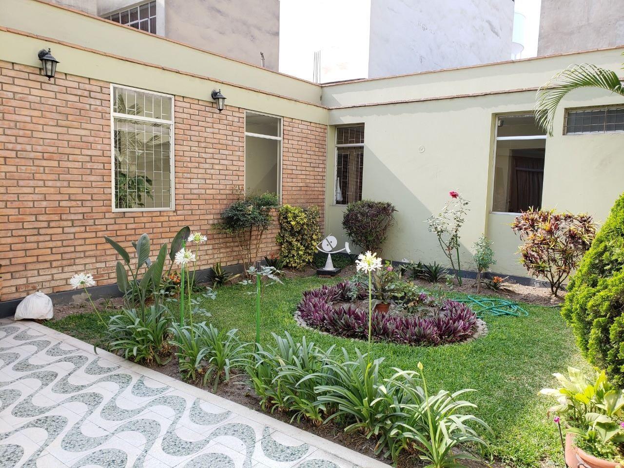 Hall de ingreso, sala, comedor, comedor de diario, cocina, escritorio, 4 dormitorios, 2.5 baños, 1 baño incorporado, 1 cuarto de servicio, 1 baño de servicio, lavandería, pisos de parquet en área social, pisos de parquet en área privada. Terraza, jardín, cochera tipo paralelas. Jardín interior, patio.