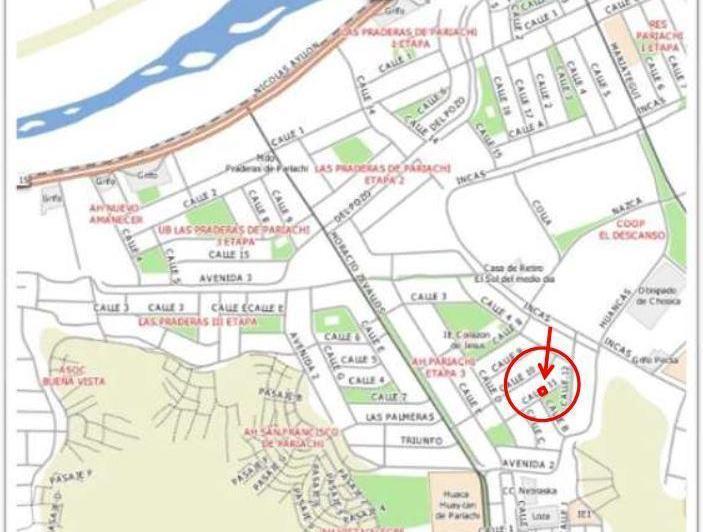 TERRENO de 120 mt2, en la RESIDENCIAL PRADERAS DE PARIACHI, esta residencial cuenta con pistas y rejas de seguridad como también todos los servicios de luz, agua y desague.